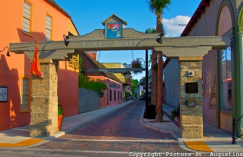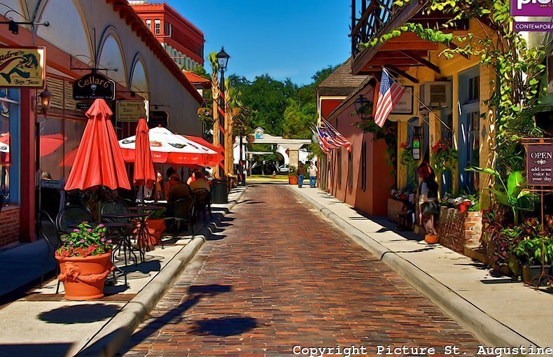 A rua principal, a Saint George Street, é apenas para pedestres e congrega um comércio variado: lojas de artesanato, sorveteria e galerias de arte. Nessa rua você encontra ainda a filial do restaurante mais antigo em atividades dos EUA, o Columbia, de Tampa, onde fica o Bush Gardens, fundado em 1895.