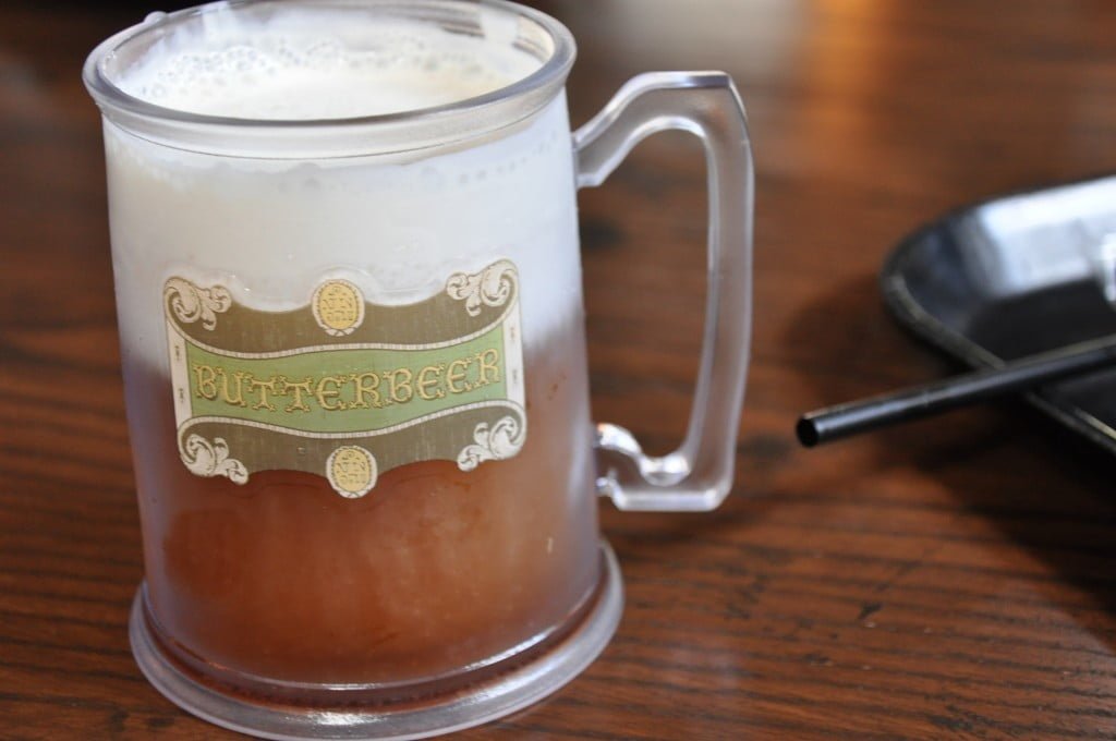 A famosa ButterBeer (cerveja amanteigada), vale a pena experimentar.