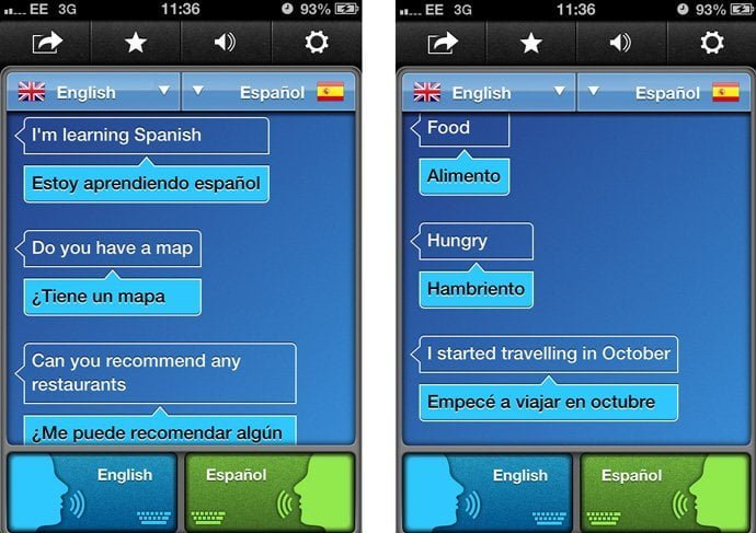 Word Lens – Imagine que você esta em um restaurante com um menu todo em inglês. Você não faz ideia do que se refere cada prato, então você pega o seu celular, aponta a camêra para o texto e instantaneamente ele é traduzido para você. Word Lens é um potente tradutor em tempo real no qual ele identifica o texto na imagem e busca a tradução em um banco de dados próprio do aplicativo. Outro ponto forte de app é que ele dispensa o uso da internet, pois os dados (dicionários) ficam amarzenados internamente. Disponível no iOS e no Android, o aplicativo apresente diversos pacotes de idiomas como o Inglês, Espanhol, Francês, Italiano, Alemão, Russo e Português.