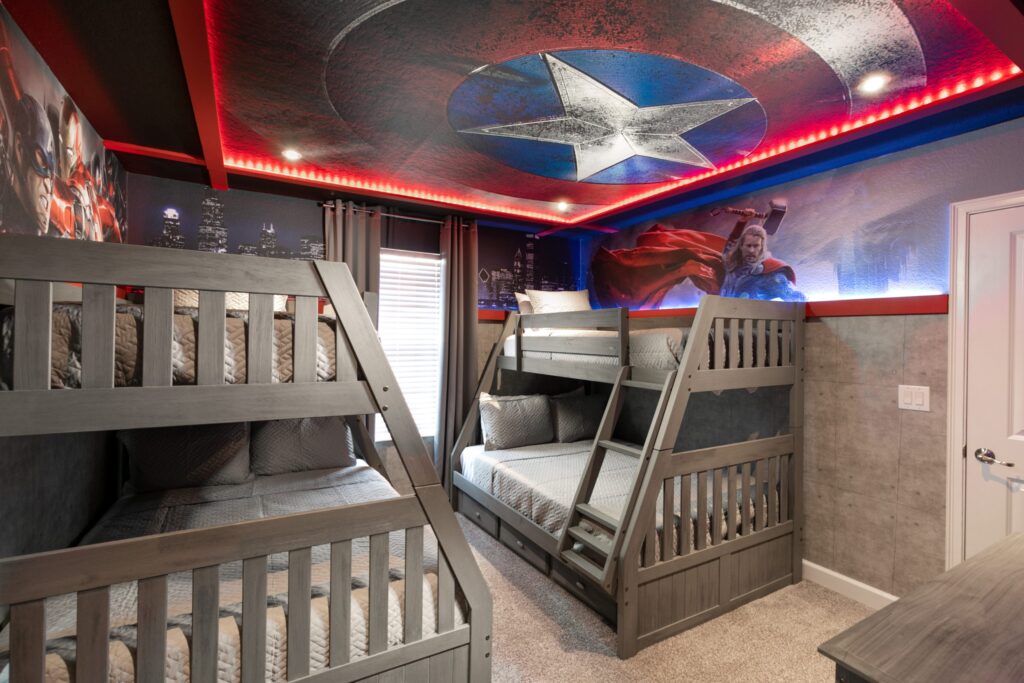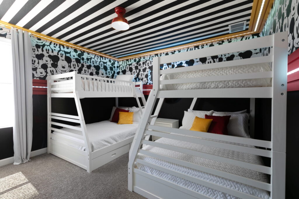 - 2 Quartos com 2 Beliches que acomoda cada, um colchão de solteiro e um colchão de tamanho casal padrão (Full)