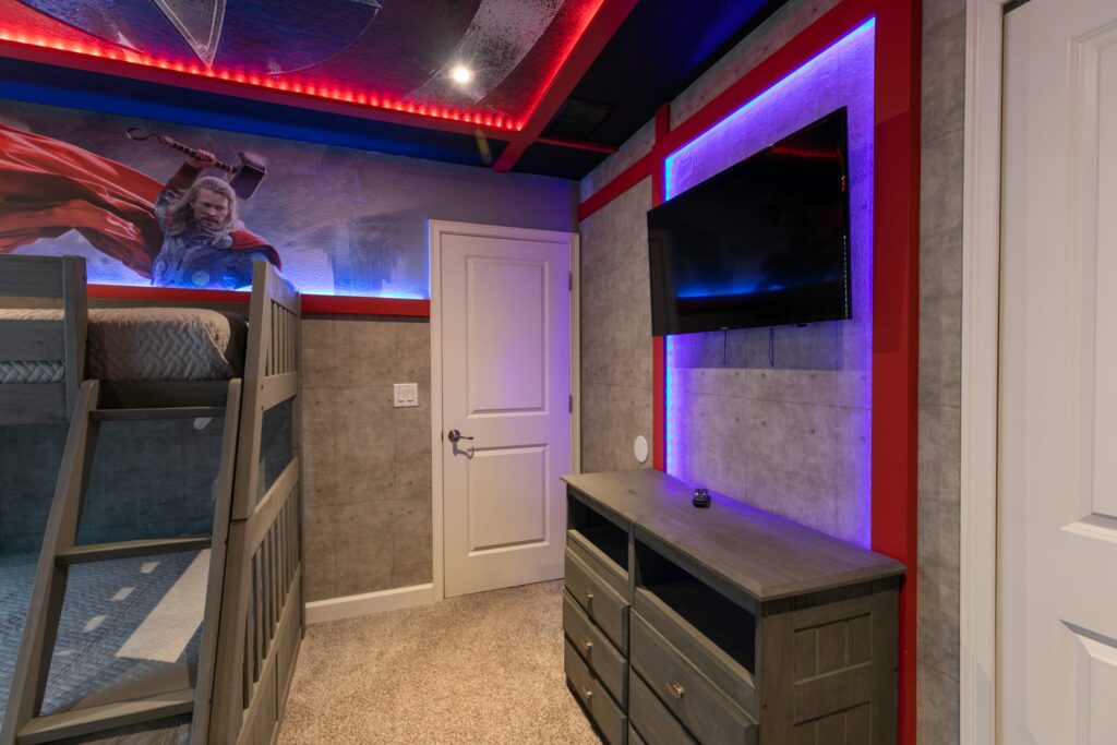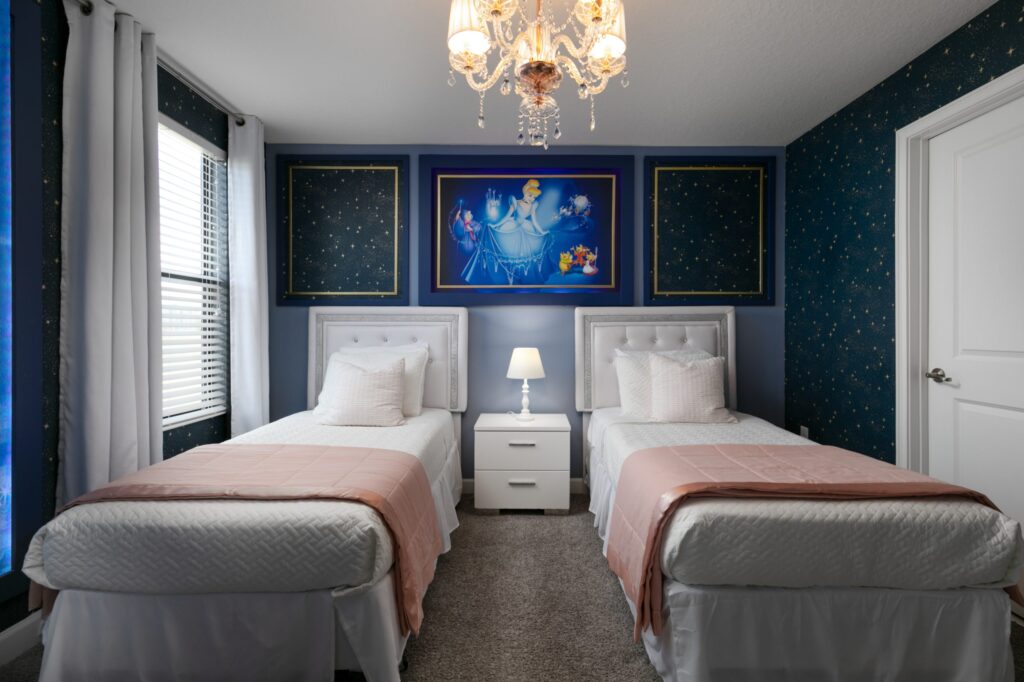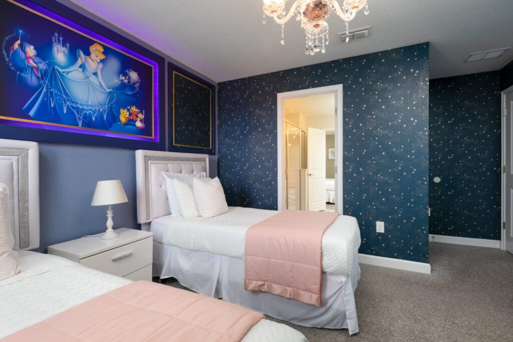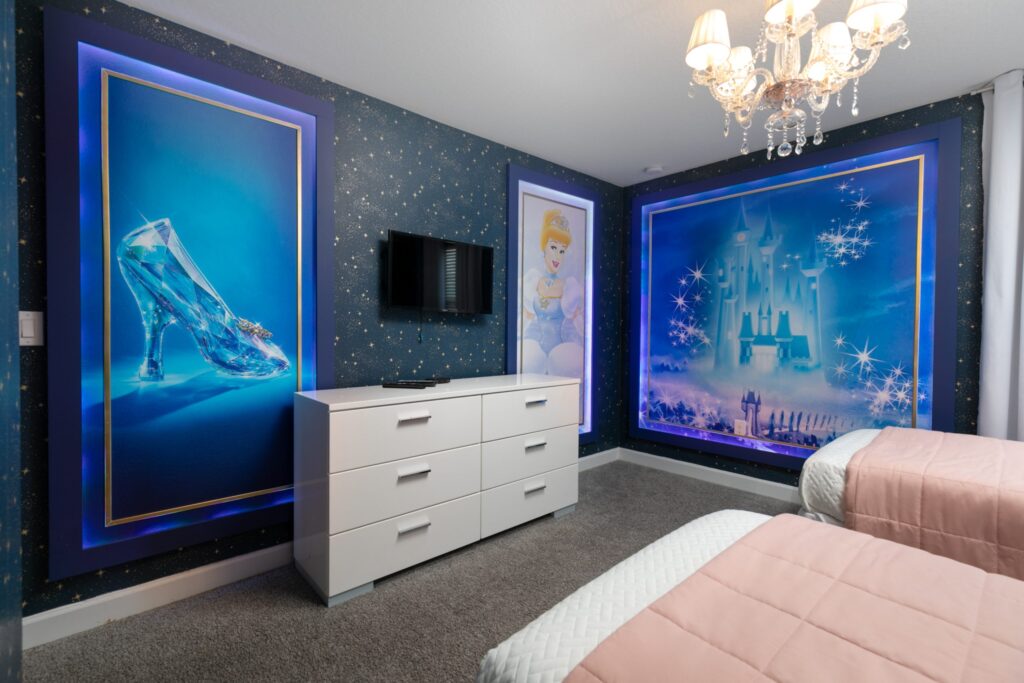 Já imaginou passar suas férias nesta casa lindamente decorada? São 8 quartos e é ótimo para um grande grupo de amigos. Com uma sala estilo cinema para todos curtirem juntos. As crianças vão adorar os quartos decorados do Mickey e da Cinderela. Com piscina privativa e localizado no magnífico Champions Gate Resort!