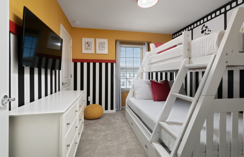 - 1 Quarto com uma Beliche equipada com um colchão de solteiro + um colchão de casal padrão (Full)