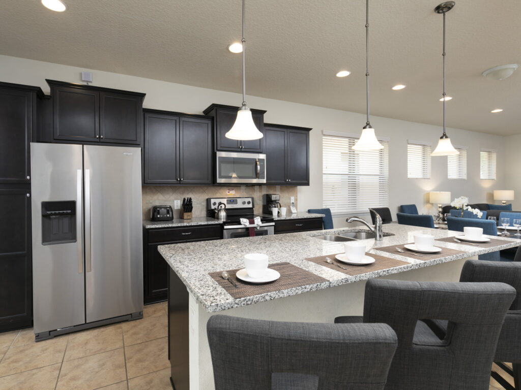 "description": "<p>Casa em Orlando Nova com linda decoração neste Condomínio Resort fechado com parque aquático para adultos e crianças. Ótima localização perto da Disney e fácil acesso a todas as atrações da região de Kissimmee/Orlando.</p>\n<p>Andar Superior</p>\n<p>1 Suíte King;</p>\n<p>1 Suíte Queen;</p>\n<p>1 Suíte com duas Bicamas Twin (4 Twin total);</p>\n<p>1 Quarto com uma Beliche Full Twin;</p>\n<p>1 Banheiro;</p>\n<p>Loft.</p>\n<p>Andar Inferior</p>\n<p> 1 Suíte King;</p>\n<p>– 1 Lavabo;</p>\n<p>– Sala de estar;</p>\n<p>– Sala de jantar;</p>\n<p>– Cozinha;</p>\n<p>– Lavanderia;</p>\n<p>– Garagem;</p>\n<p>– Piscina.</p>\n<p>Importante: O Windsor at Westside Resort cobra uma taxa de US$ 20 por carro, que deve ser paga diretamente na guarita no momento da chegada.</p>\n",