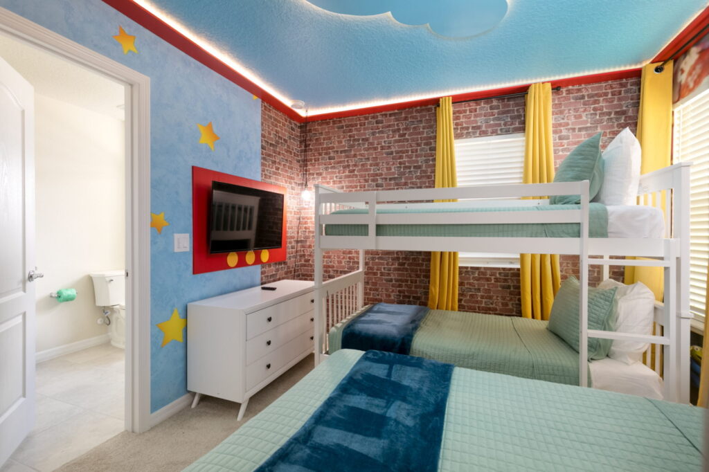 Lindamente decorado e com quartos temáticos incríveis, incluindo uma beliche com um escorregador e uma sala de jogos perfeita para entreter a todos! Área de piso aberto onde você pode cozinhar e desfrutar da companhia de amigos e familiares. Divirta-se ao sol da Flórida enquanto mergulha na piscina privada. Você vai se divertir muito neste lugar confortável para ficar.